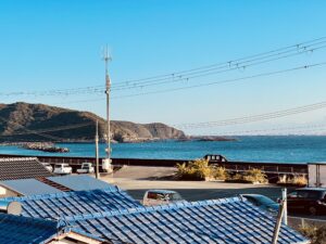 テラスから海を一望でき、海の風を感じることのできる昭和の匂いのする2階建1軒家の丸ごと貸し切りの家です。